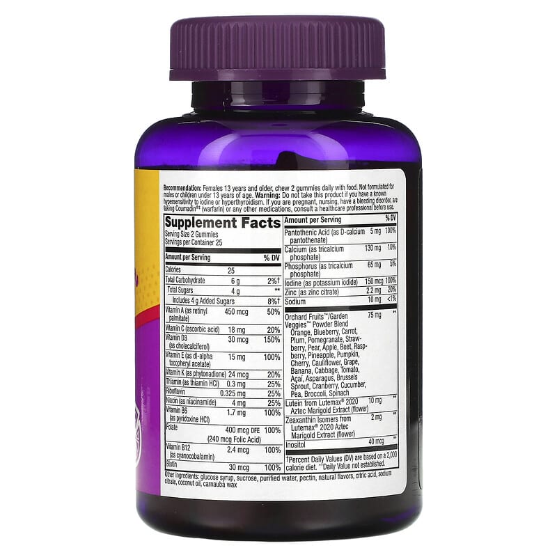 Nature’s Way Alive! Teen Complete Multi for Her 50 Gummies chứa nhiều thành phần dinh dưỡng quan trọng, bao gồm: