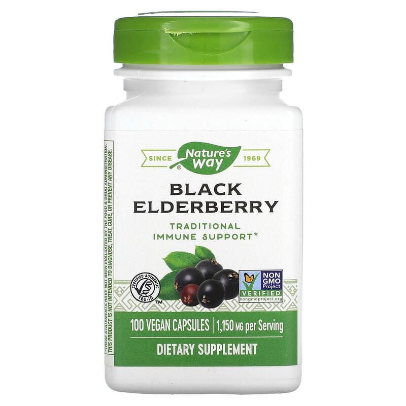 Viên uống Nature's Way Black Elderberry 575 mg 100 Vegan Capsules tăng cường miễn dịch tự nhiên, chiết xuất từ quả cơm cháy, phù hợp cho người ăn chay 033674124406