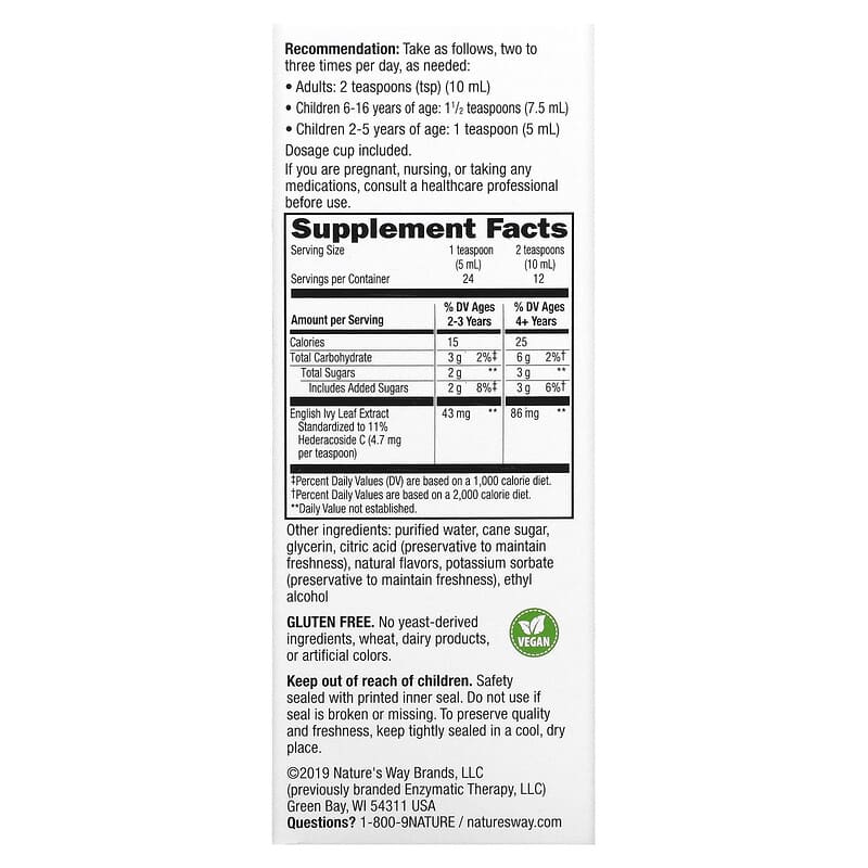 Giới thiệu Chiết xuất lá thường xuân Nature’s Way Bronchial Soothe 120 ml (4 fl oz)