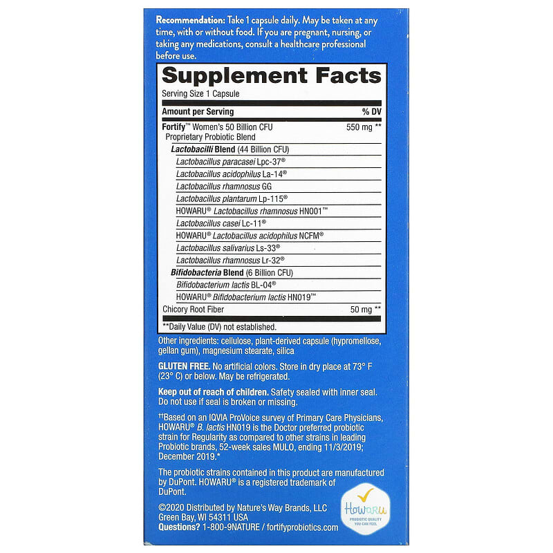 Probiotic Nature's Way Fortify Women's Extra Strength 50 tỷ lợi khuẩn, hỗ trợ sức khỏe tiêu hóa và miễn dịch, viên nang chậm tan, dành cho nữ. 033674115817