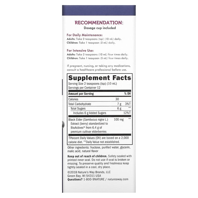 Siro Sambucus Elderberry Nature's Way 120ml hỗ trợ miễn dịch, chiết xuất quả cơm cháy, tăng cường sức khỏe, hương vị tự nhiên, an toàn cho gia đình. 033674069707