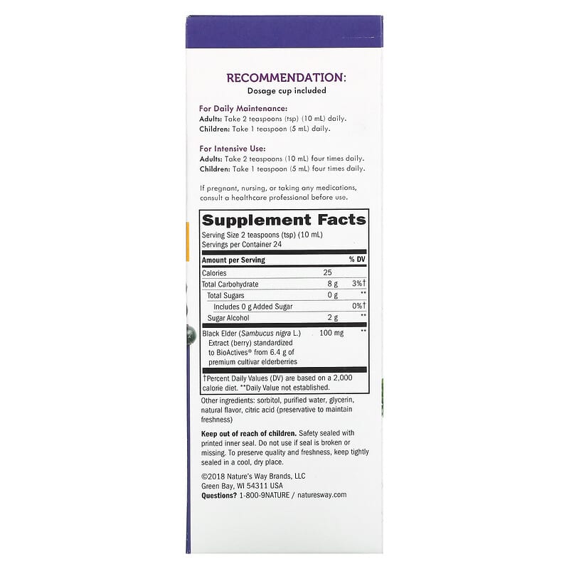 Siro không đường Nature's Way Sambucus Elderberry 240ml tăng cường miễn dịch, chiết xuất từ quả cơm cháy, hỗ trợ sức khỏe, phù hợp cho người ăn kiêng 033674153314