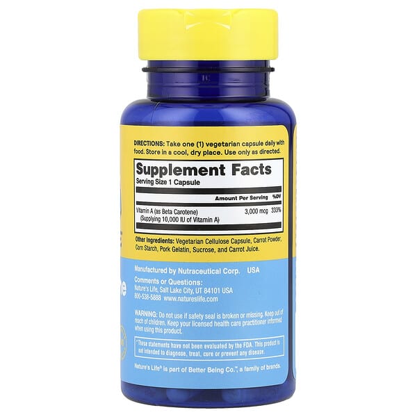Thông tin sản phẩm Nature’s Life, Beta Carotene, 3.000 mcg, 100 viên