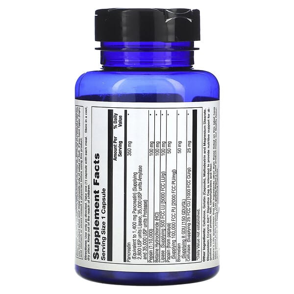 – Pancreatin: Cung cấp 2,800 USP units Lipase, 35,000 USP units Amylase và 35,000 USP units Protease, giúp phân hủy chất béo, carbohydrate và protein.