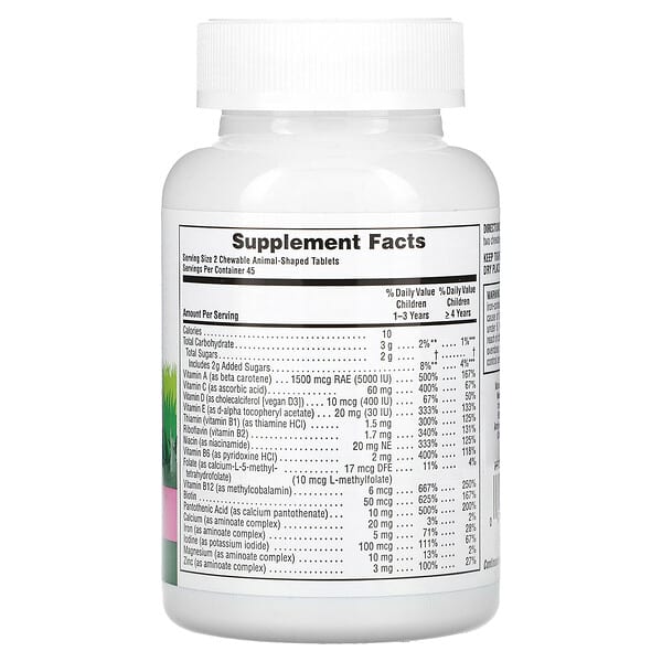 Serving Size: 2 Chewable Animal-Shaped Tablets | |||