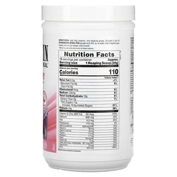Bột protein Spiru-Tein vị dâu, 1,2 lbs, chính hãng Mỹ, cung cấp dinh dưỡng hoàn hảo cho bữa ăn bổ sung năng lượng., UPC: 097467045736
