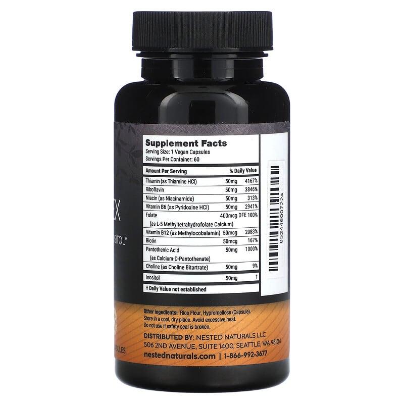 Viên uống Nested Naturals B-Complex 60 viên nang thuần chay bổ sung vitamin B hỗ trợ năng lượng cải thiện sức khỏe và tăng cường hệ miễn dịch 852446007224