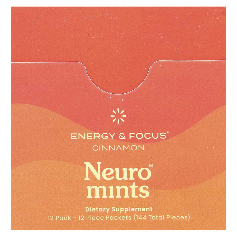 Kẹo cao su NeuroGum và viên ngậm NeuroMints hương quế giúp tăng cường năng lượng, sự tập trung, tiện lợi, 12 gói, 12 viên., UPC 850008160042