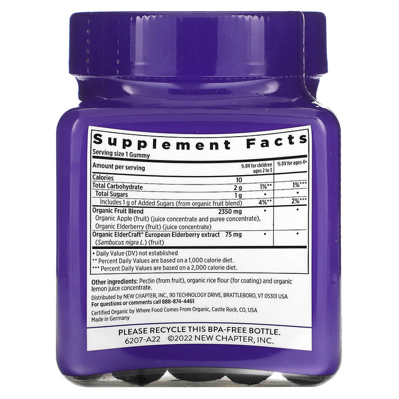 Giới thiệu sản phẩm New Chapter Kids Organic Elderberry Whole-Food Gummies Ages 2+ 30 Vegan Gummies