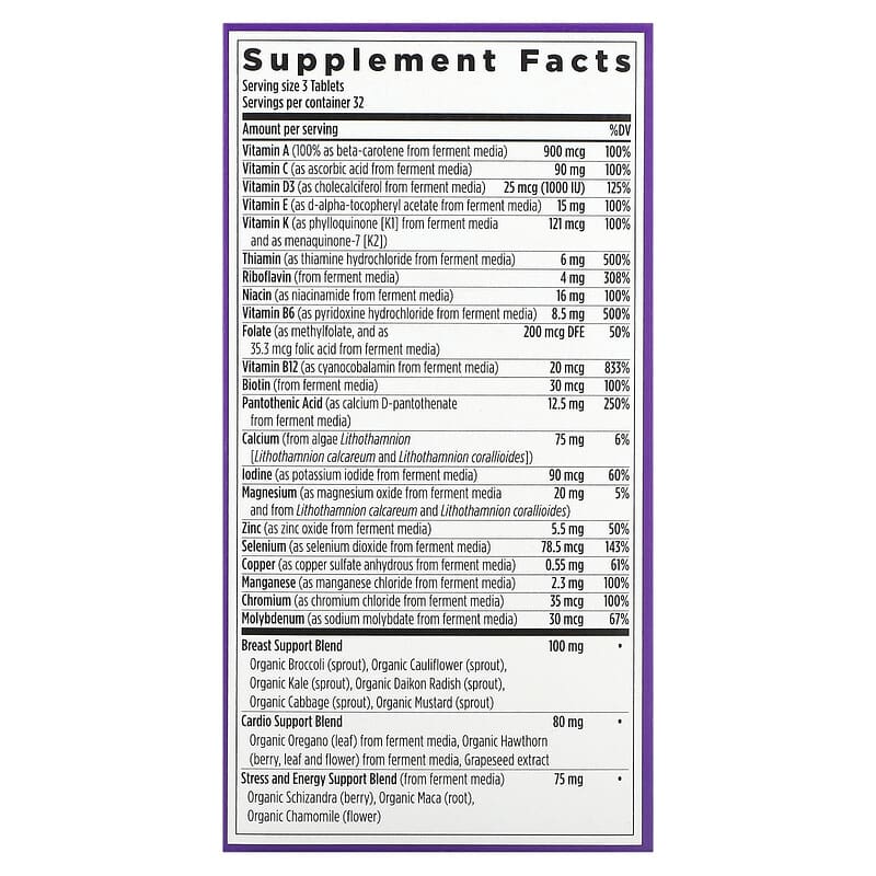 New Chapter Women’s 40+ Advanced Multivitamin chứa nhiều thành phần quý giá được chiết xuất từ thực vật và lên men, bao gồm: