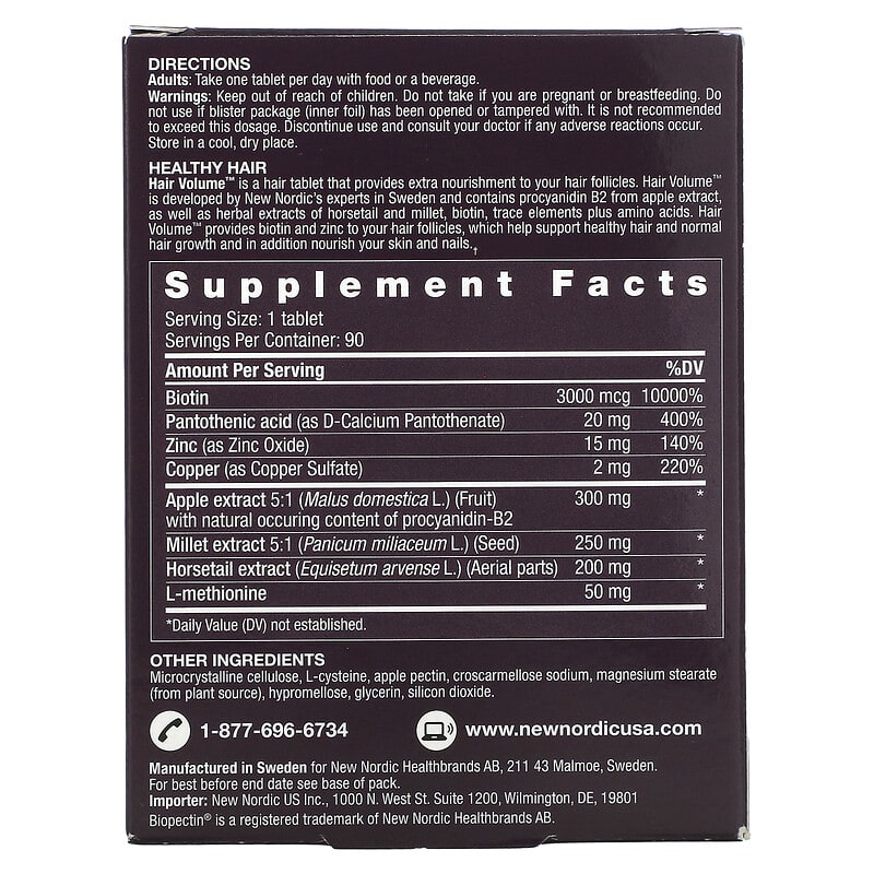 Viên uống Hair Volume New Nordic US Inc 90 viên bổ tóc