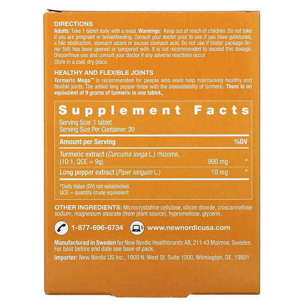 Thông tin sản phẩm New Nordic, Turmeric Mega, 30 viên