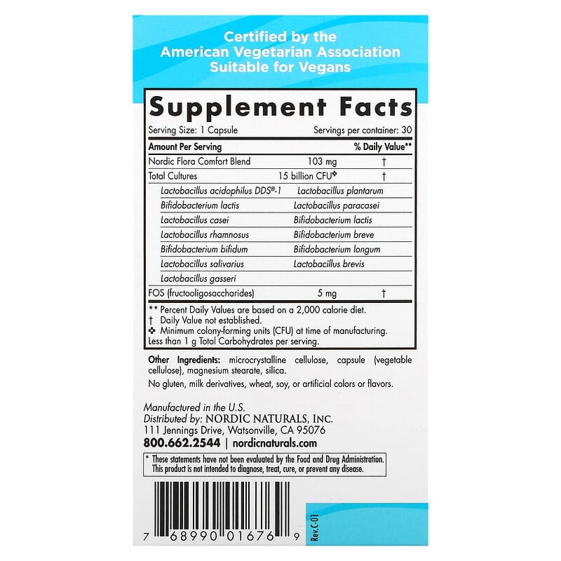 Giới thiệu Nordic Naturals Nordic Flora Probiotic Comfort 15 tỷ CFU 30 viên nang