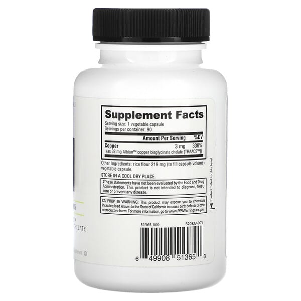 Copper (as 32 mg Albion™ copper bisglycinate chelate [TRAACS™]) | 3 mg | 330% |