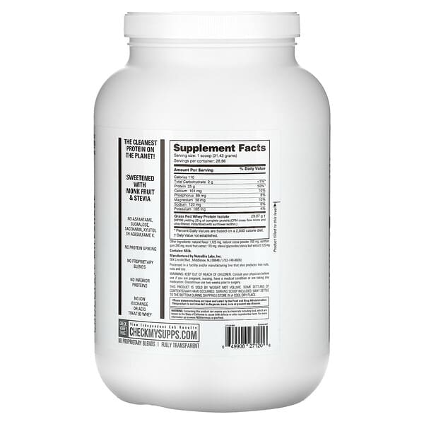 Thông tin sản phẩm NutraBio, Grass Fed Whey Protein Isolate, Chocolate Milkshake, 2 lb (907 g)
