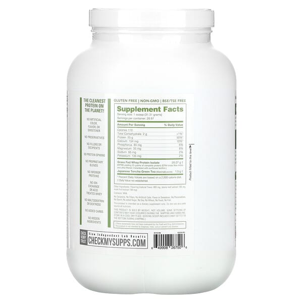 Thông tin sản phẩm NutraBio, Grass Fed Whey Protein Isolate, Matcha Latte, 2 lb (907 g)