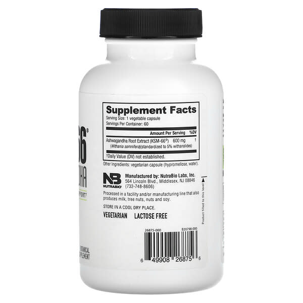 Thông tin sản phẩm NutraBio, KSM-66, Ashwagandha, 600 mg, 60 viên