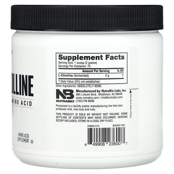 Thông tin sản phẩm NutraBio, L-Citrulline, Free Form Amino Acid, 5,3 oz (150 g)