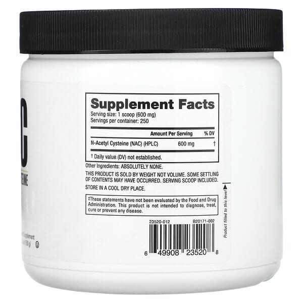 Thông tin sản phẩm NutraBio, NAC, N-Acetyl Cysteine, 5,3 oz (150 g)