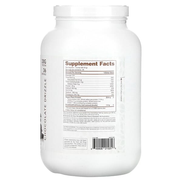 Thông tin sản phẩm NutraBio, Plant Protein, Chocolate Drizzle, 2,42 lb (1.096 g)