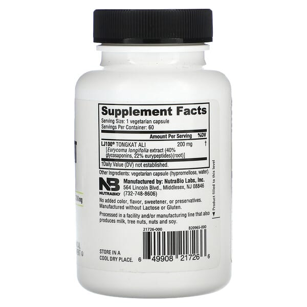 Thông tin sản phẩm NutraBio, Tongkat Ali, Maximum Strength, 200 mg, 60 viên