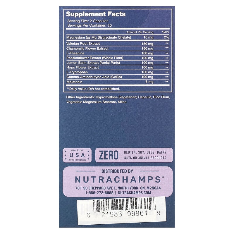 Viên uống ngủ ngon NutraChamps Dreamrite 60 viên giúp cải thiện giấc ngủ, dễ nuốt, hỗ trợ thư giãn tự nhiên., UPC 621983999619