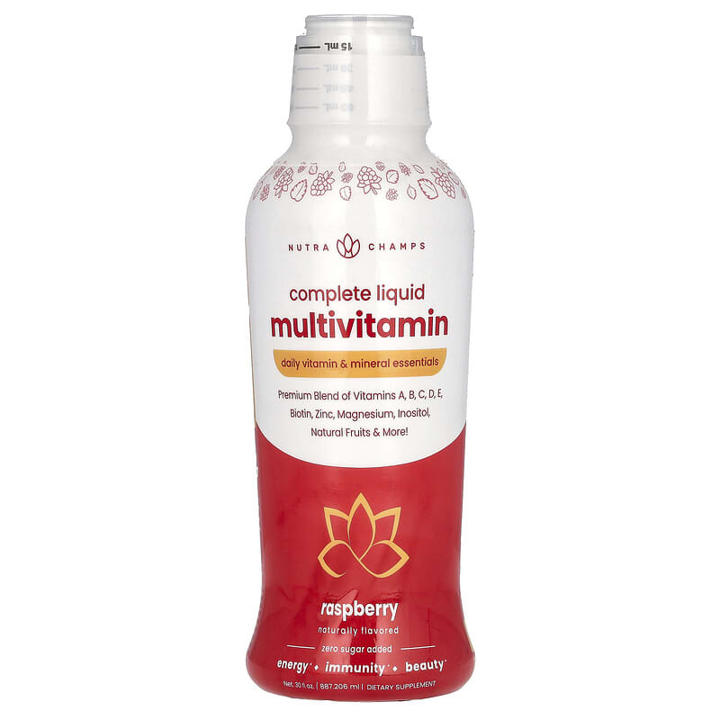 Vitamin tổng hợp dạng lỏng NutraChamps Raspberry 887ml, hỗ trợ sức khỏe toàn diện, dễ hấp thụ, hương vị thơm ngon., UPC 621983500921