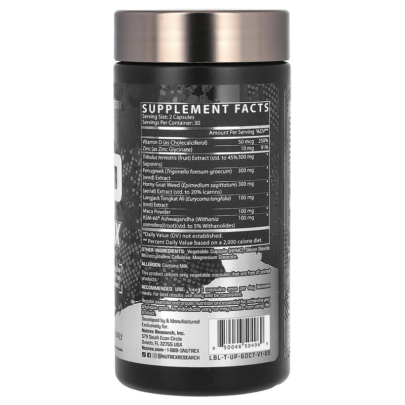 Viên uống Nutrex T-Up Max giúp tăng cường testosterone, tăng sức mạnh và sức bền, hỗ trợ sức khỏe sinh lý nam giới., UPC 850046504969