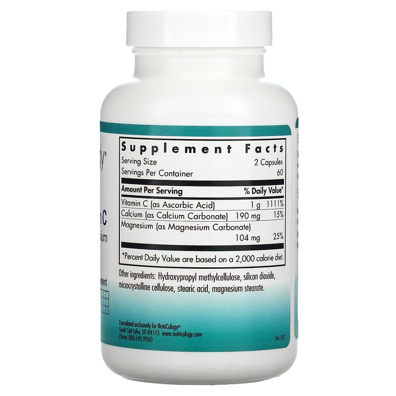 Vitamin C tăng cường hệ miễn dịch từ Nutricology, bổ sung canxi và magie. 120 viên chay, cải thiện sức khỏe, phù hợp mọi chế độ ăn uống. 713947500105