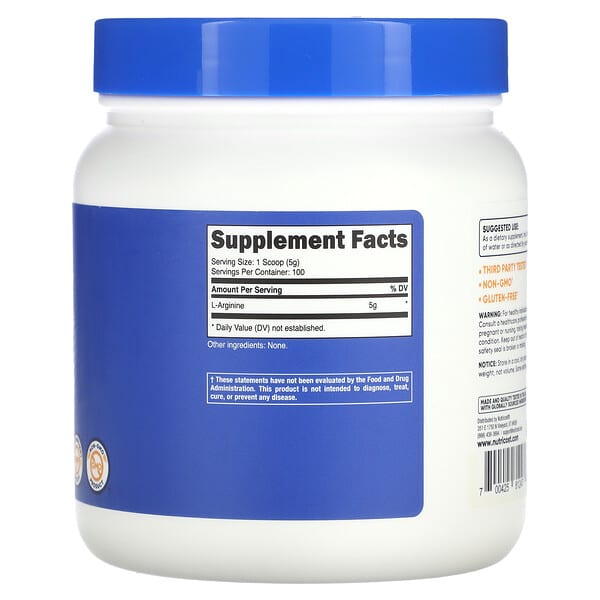 Thông tin sản phẩm Nutricost, L-Arginine, không mùi vị, 17,9 oz (500 g)