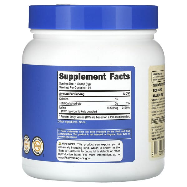 Thông tin sản phẩm Nutricost, Organic Kelp Powder, không mùi vị, 1 lb (454 g)