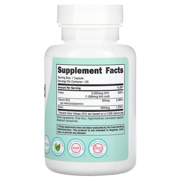 Thông tin sản phẩm Nutricost, Women, Folic Acid with Biotin & Vitamin B12, 120 viên