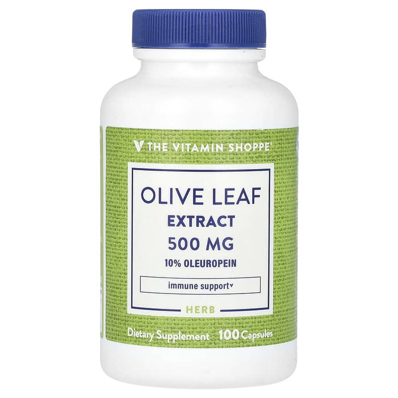 Chiết xuất lá olive The Vitamin Shoppe 500 mg hỗ trợ sức khỏe tim mạch và tăng cường miễn dịch, 100 viên tiện dụng., UPC 766536016754