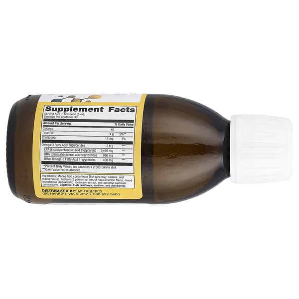Thông tin sản phẩm Metagenics, OmegaGenics®, Fish Oil EPA-DHA Liquid, Natural Lemon, 5 fl oz (150 ml)