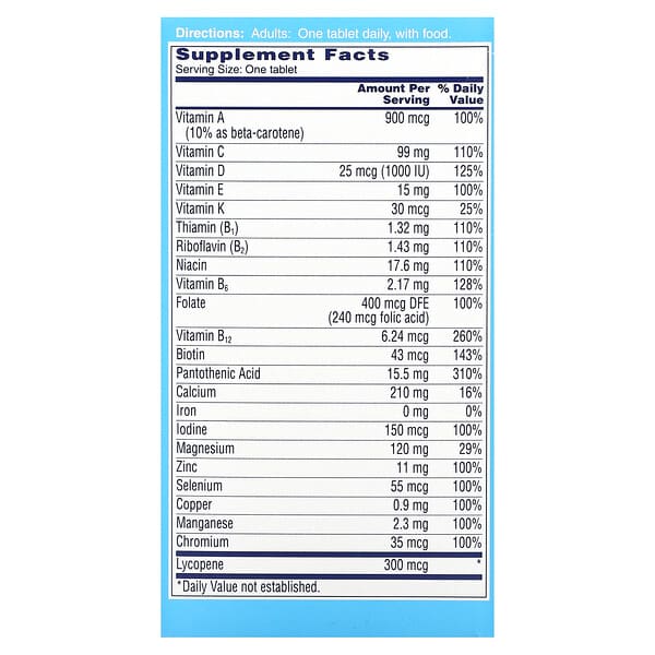 One-A-Day Men’s Complete Multivitamin chứa một loạt các vitamin và khoáng chất thiết yếu, bao gồm: