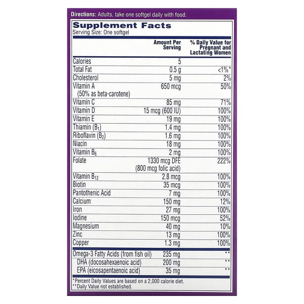 Amount Per Serving | %Daily Value for Pregnant and Lactating Women | |