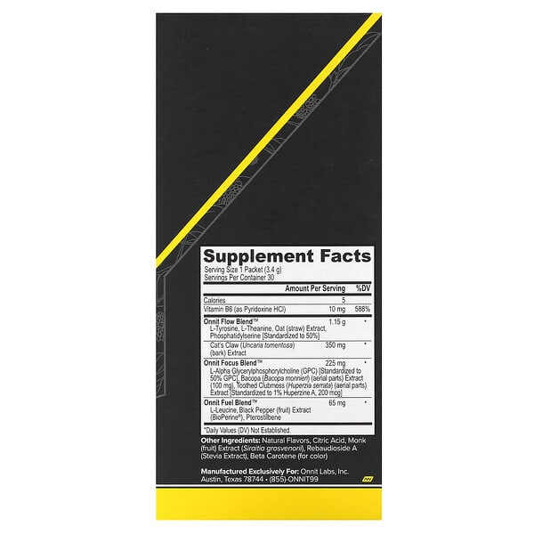 Thông tin sản phẩm Onnit, Alpha Brain, Instant, Pineapple Punch, 30 gói, 0,12 oz (3,4 g)