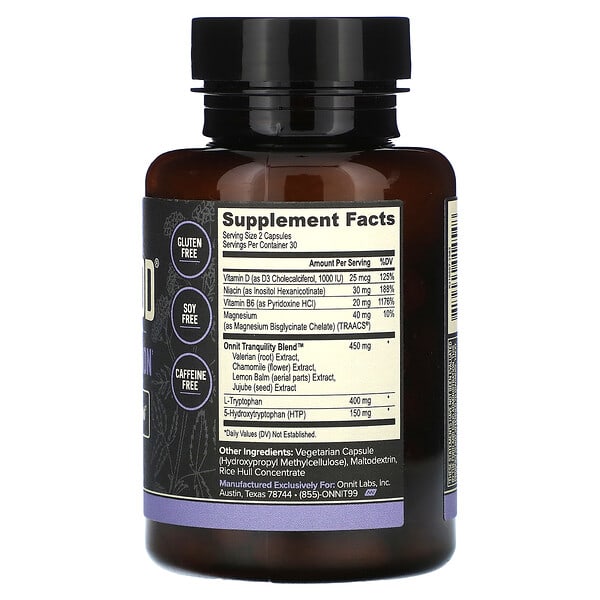 | Onnit Tranquility Blend™ Valerian (root) Extract, Chamomile (flower Extract, Lemon Balm (aerial parts) Extract, Jujube (seed) Extract | 450 mg | * |