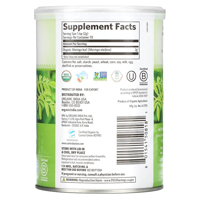 Mua bột Moringa Organic India 226g giàu dinh dưỡng, hỗ trợ năng lượng, tăng cường miễn dịch. Chất lượng hữu cơ, an toàn cho sức khỏe người dùng. 801541508181