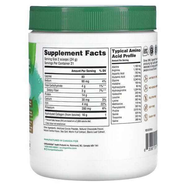 Thông tin sản phẩm Organika, Enhanced Collagen, Chocolate, 17,78 oz (504 g)