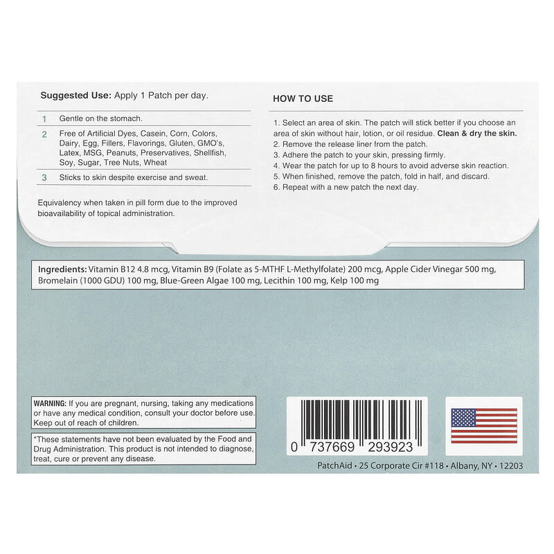 Miếng dán giảm cân PatchAid tự nhiên, 30 miếng, hỗ trợ giảm cân an toàn, dễ sử dụng, hiệu quả vượt trội., UPC 737669293923