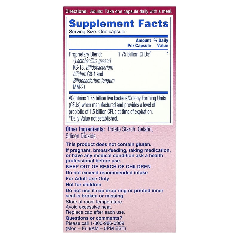 Proprietary Blend: (Lactobacillus gasseri KS-13, Bifidobacterium bifidum G9-1 and Bifidobacterium longum MM-2) | 1.75 billion CFUs# | * |
