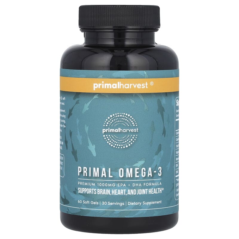 Omega-3 Primal Harvest 60 viên nén mềm hỗ trợ sức khỏe tim mạch và não bộ, cung cấp axit béo omega-3 tự nhiên chất lượng cao., UPC 850030106247