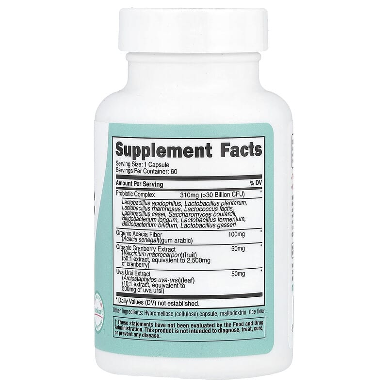 Organic Cranberry Extract (Vaccinium macrocarpon) (fruit) (50:1 extract, equivalent to 2,500 mg of cranberry) | 50 mg | * |