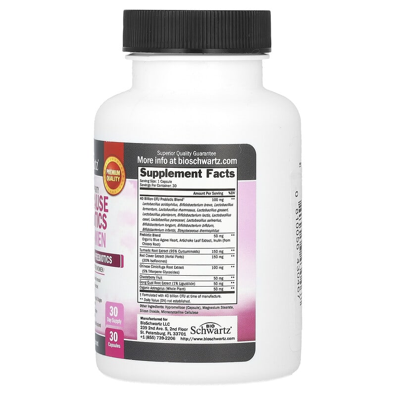Probiotics BioSchwartz Ultra Tinh Khiết hỗ trợ sức khỏe phụ nữ mãn kinh, 30 viên, tăng cường miễn dịch và cân bằng vi khuẩn đường ruột., UPC 810056430467