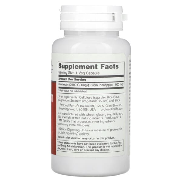 Giới thiệu sản phẩm Protocol for Life Balance, Bromelain, 2400 GDU/g, 500 mg, 90 viên