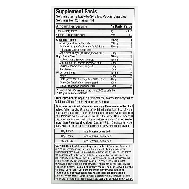 1. Senna Leaf Extract: Đây là thành phần chính giúp hỗ trợ quá trình thanh lọc. Senna đã được nghiên cứu và chứng minh là giúp giảm thời gian trung bình của chất thải trong đường tiêu hóa.