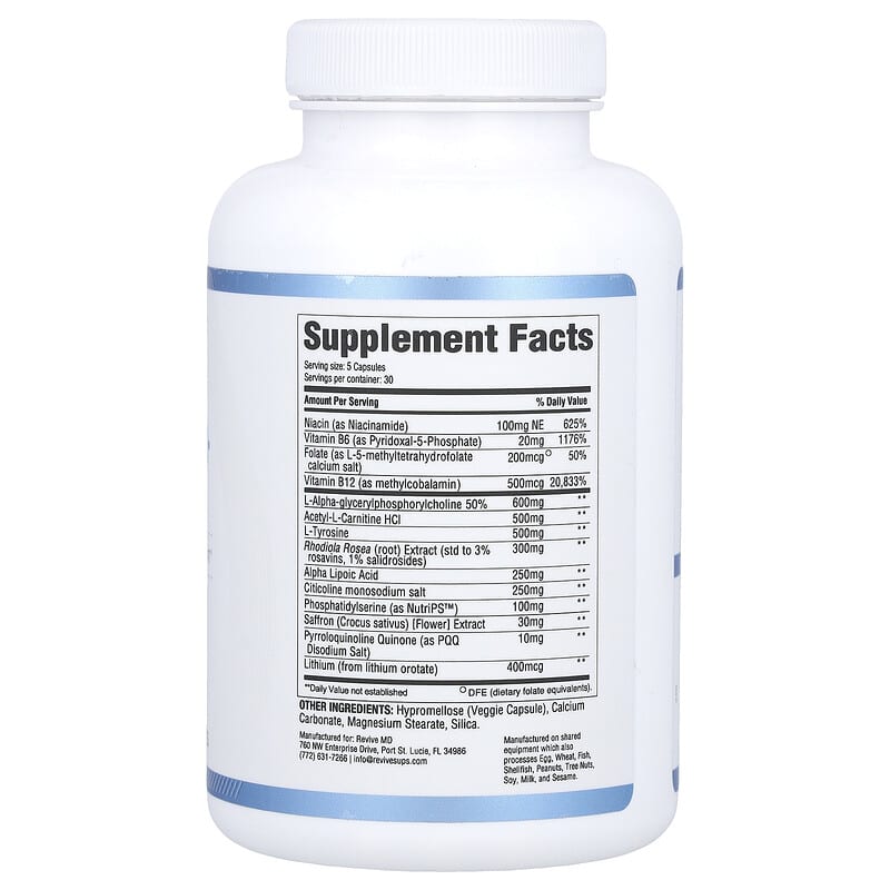 Viên uống bổ não Revive Brain+ hỗ trợ tăng cường trí nhớ, tập trung, phù hợp cho người chay, 150 viên., UPC 850030689047