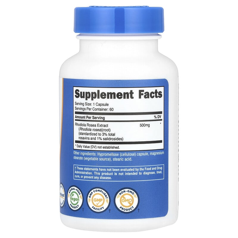 Viên uống Rhodiola Rosea 500mg Nutricost giúp tăng cường sức khỏe, giảm căng thẳng và cải thiện sức bền. Hỗ trợ tinh thần tỉnh táo., UPC 810139572985
