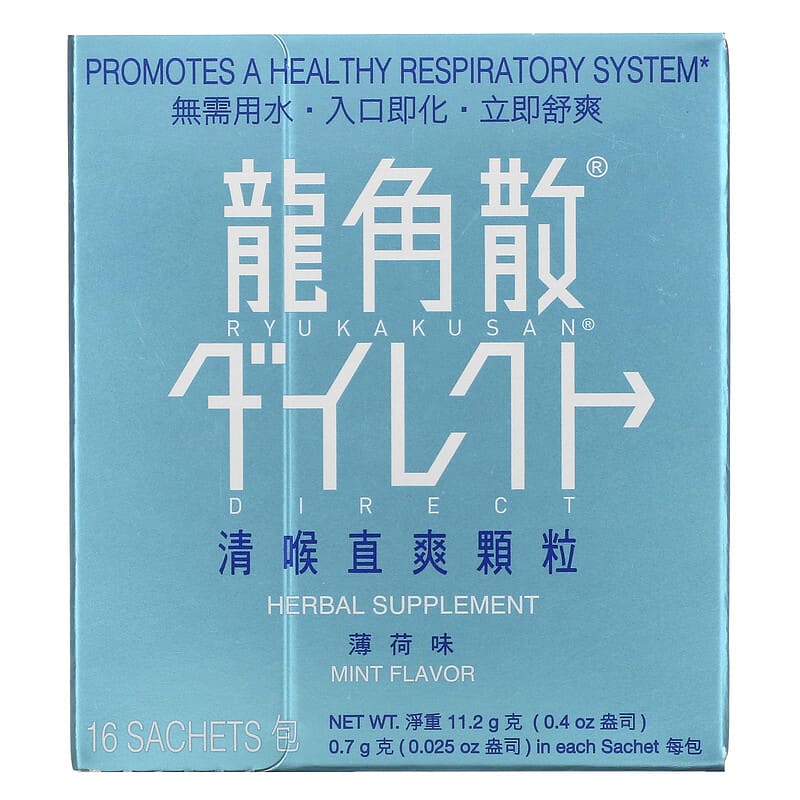 Ryukakusan Direct Mint được thiết kế để hỗ trợ sức khỏe hệ hô hấp. Sản phẩm này có khả năng: